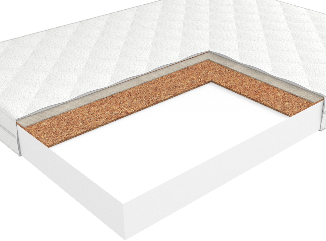Натуральный гипоаллергенный материал. Благодаря пропитке из натурального латекса, волокна прочно скреплены в цельную плиту. Кокосовое волокно придает матрасу жёсткость и обладает бактерицидными свойствами. Производство – Enkev, Польша.
