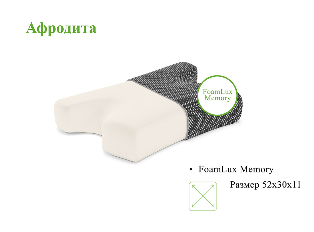 Можно ли спать на боку и просыпаться без заломов на лице? Да, если вы спите на подушке “Афродита”! Это специальная разработка: Х-образная форма обеспечивает комфортную поддержку шеи и головы, при этом лицо едва касается подушки. А пена с эффектом памяти Foam Lux Memory деликатно подстраивается под положение тела, не создавая лишнего давления. Это способствует ровности кожи и отдохнувшему виду сразу после сна.